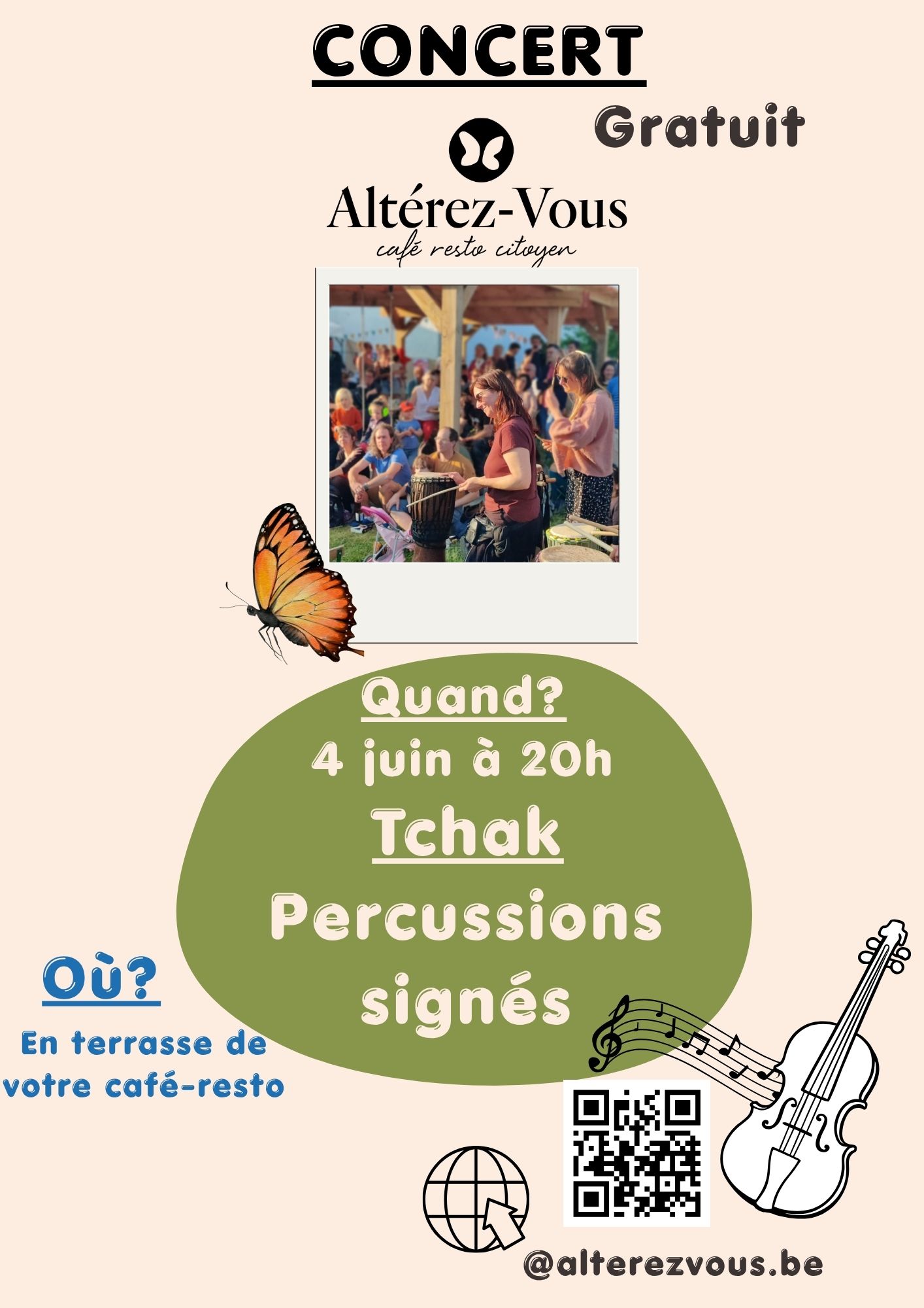Venez découvrir la magie du rythme signé avec les élèves de Tchak! Percussion, improvisation, sourire et ambiance festive au programme !